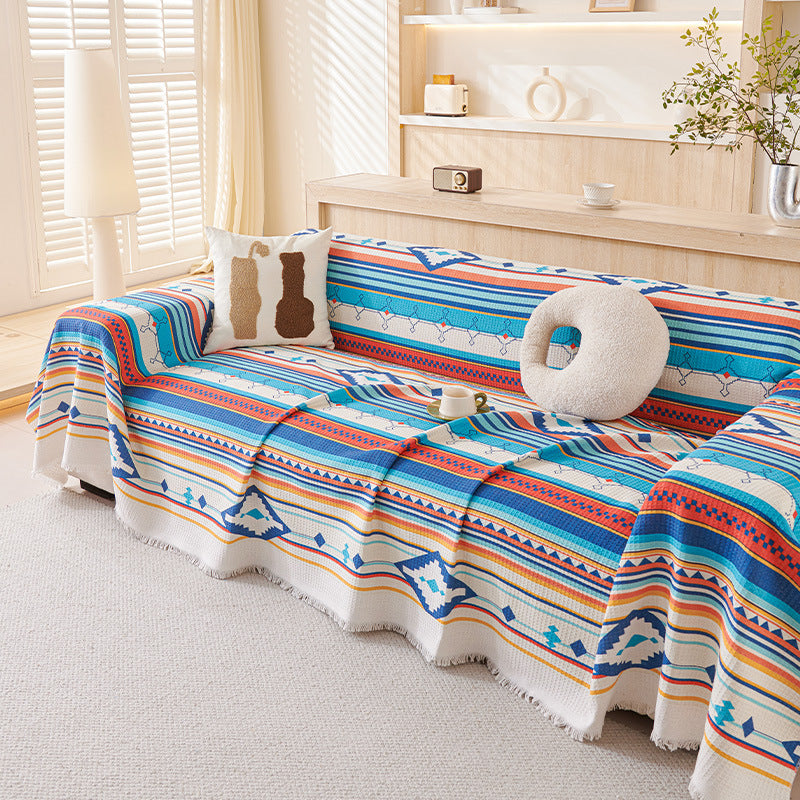 Soft & Comfortable Sofa Cover. If you are accustomed to sofa covers made to fit the sofa with straps to hold them up, then heres something different. Its more like a blanket that you throw over the sofa. Its easy on, and easy off. Casual and easy to wash, so you can wash it as often as your bed sheets without much extra work. The seller recommends that you measure first before purchasing. I will just say that with some of it hanging over the back and arms, you will likely need a lot bigger cover than you think.